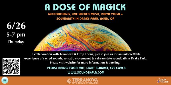 Please join us for a Dose of Magick in the Park with Kevin Kraft & Lindsey Reinhart for a special event of microdosing with Drop Thesis, Sacred Sounds, Somatics & A Dreamstate Soundbath outside at Drake Park.